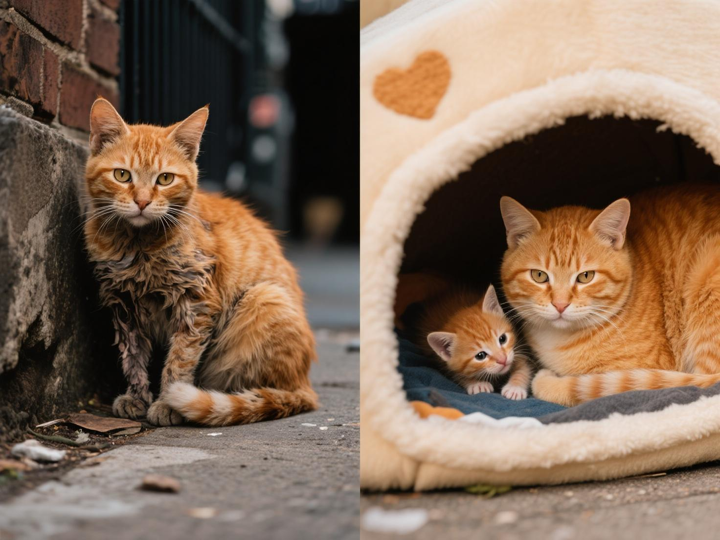This heartwarming story begins with the rescue of a frail orange stray cat. We named her Sunny, gave her a safe home, and carefully cared for her until she welcomed healthy kittens.